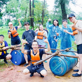 After praying hard for clear skies, the rain finally stopped, allowing us to proceed with our outdoor adventure activities! The highlight was the Water Rafting Challenge, where each team had to construct a raft that could float and carry at least four members—a test of teamwork, problem-solving, and trust.